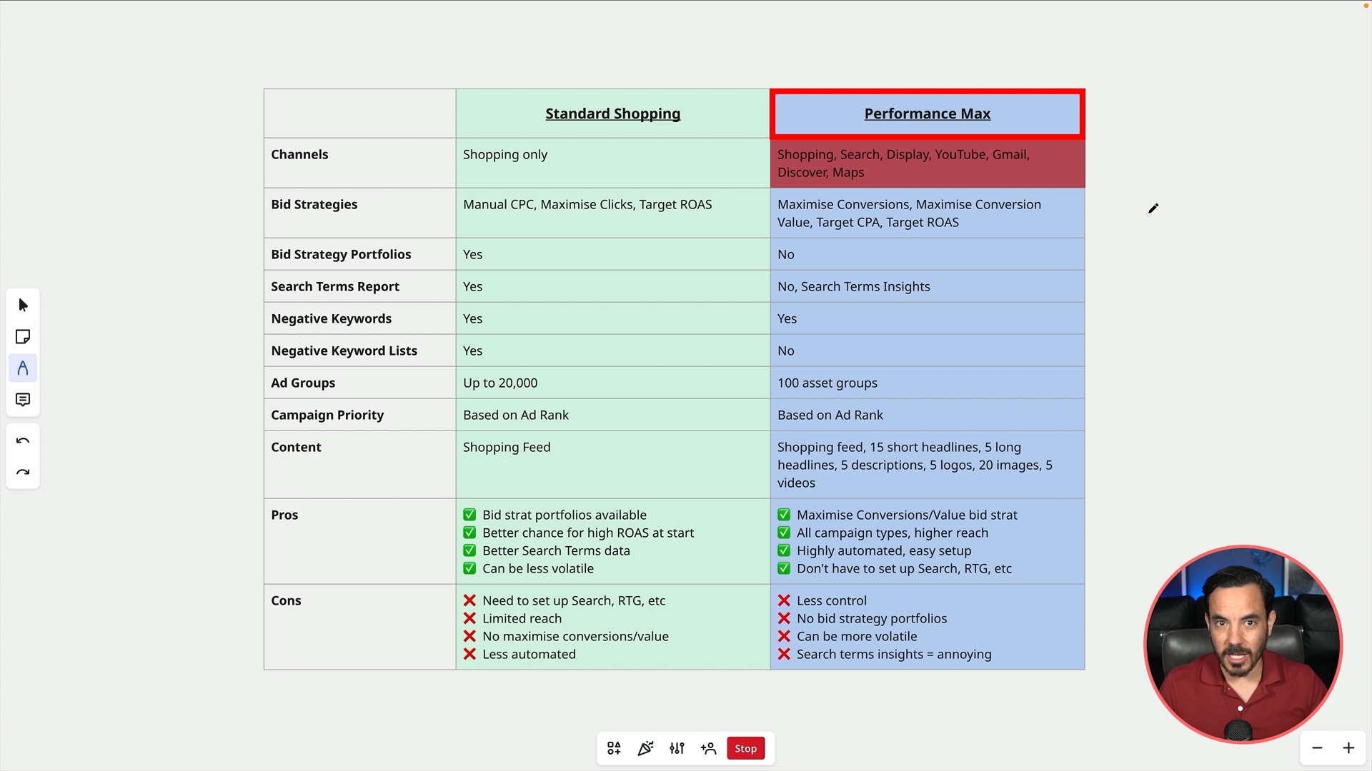 When I compare Performance Max (PMax) and Standard Shopping, I break it down into five key areas: