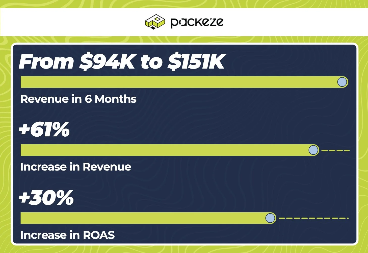From $94K to $150K Monthly Revenue With 30% Increase In ROAS For Packeze